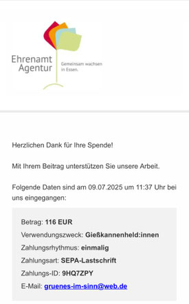 Besten Dank an die Spendenden für Grünes-To-Go bei der Offenen Gartenpforte Juni und Juli 2025, sowie im Rahmen der 1. Offenen Gartenpforte Ruhrgebiet